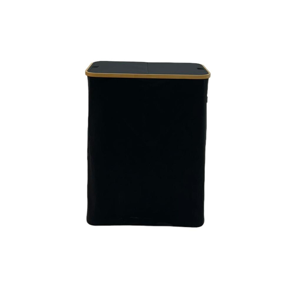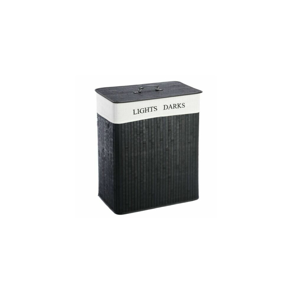(BLACK) FOLDING LAUNDRY BASKET HAMPER BAMBOO WOOD DARK AND LIGHT SECTION WITH LID