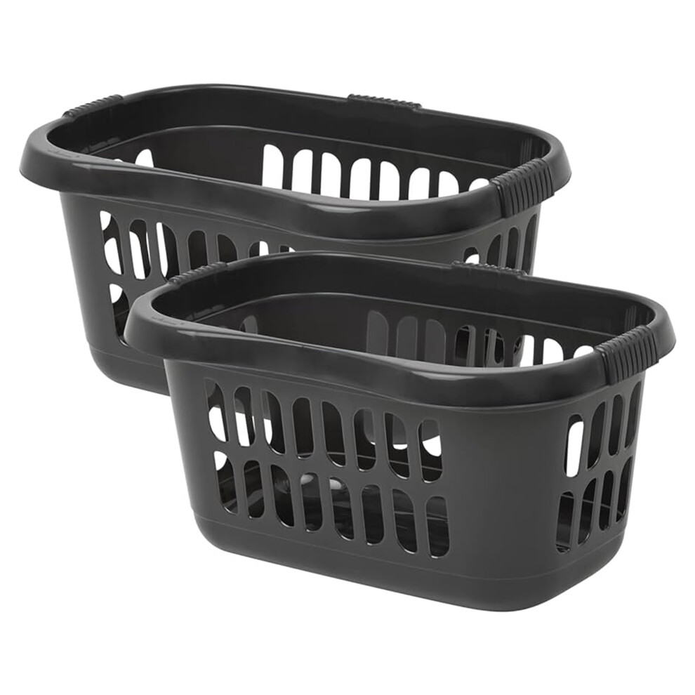 2 x Midnight (Black/Grey) Plastic Laundry Basket For Washing Clothes