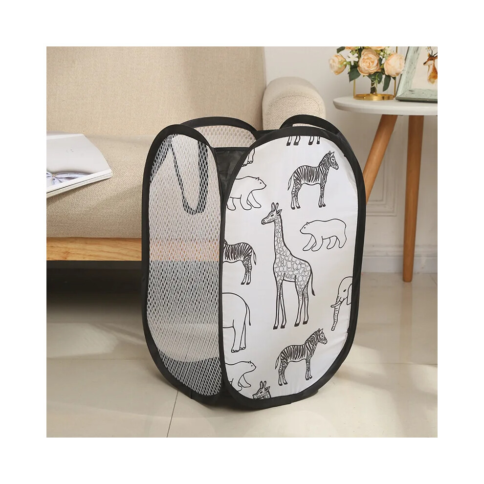 (Black, One size) Laundry Basket Large Capacity Cartoon Foldable Multi Holes Hollow Out Store Dirty Clothes Flexible Giraffe Print Dirty Clothes Baske