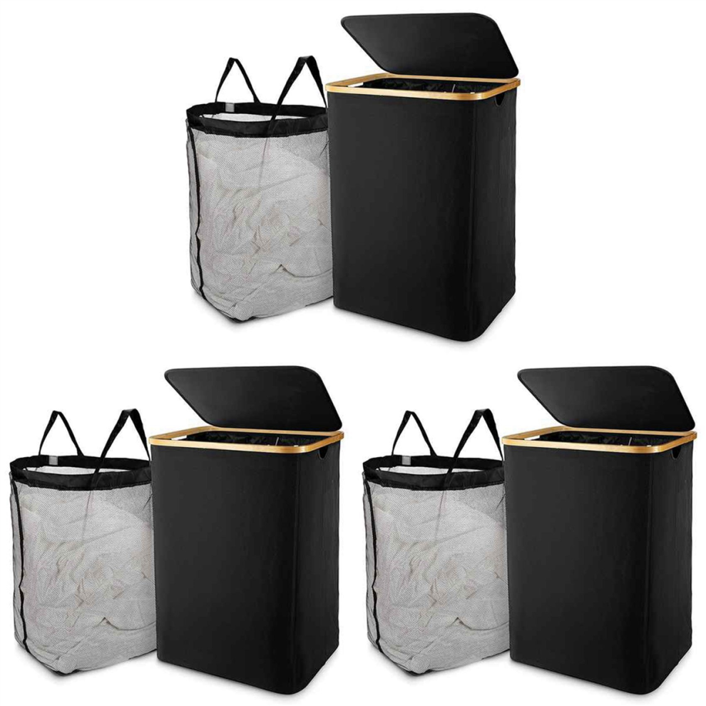 3X Laundry Basket with Lid, Black Laundry Basket with Removable Laundry Bag - Laundry Sorter for Bathroom & Bedroom