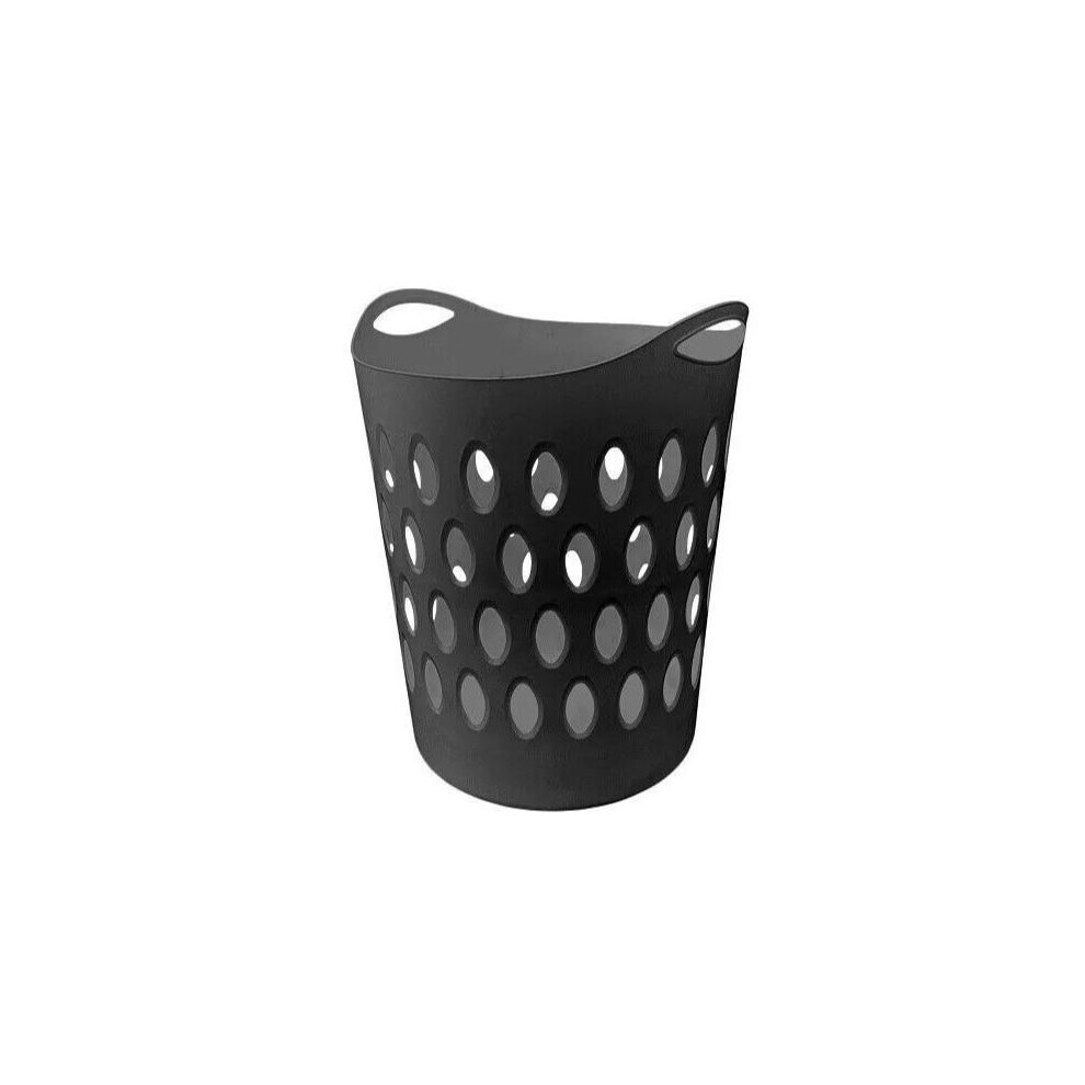 (Black) New Flexible Laundry Basket Home Clothes Washing Tall Plastic Hamper Bin 50L Large Organiser UK