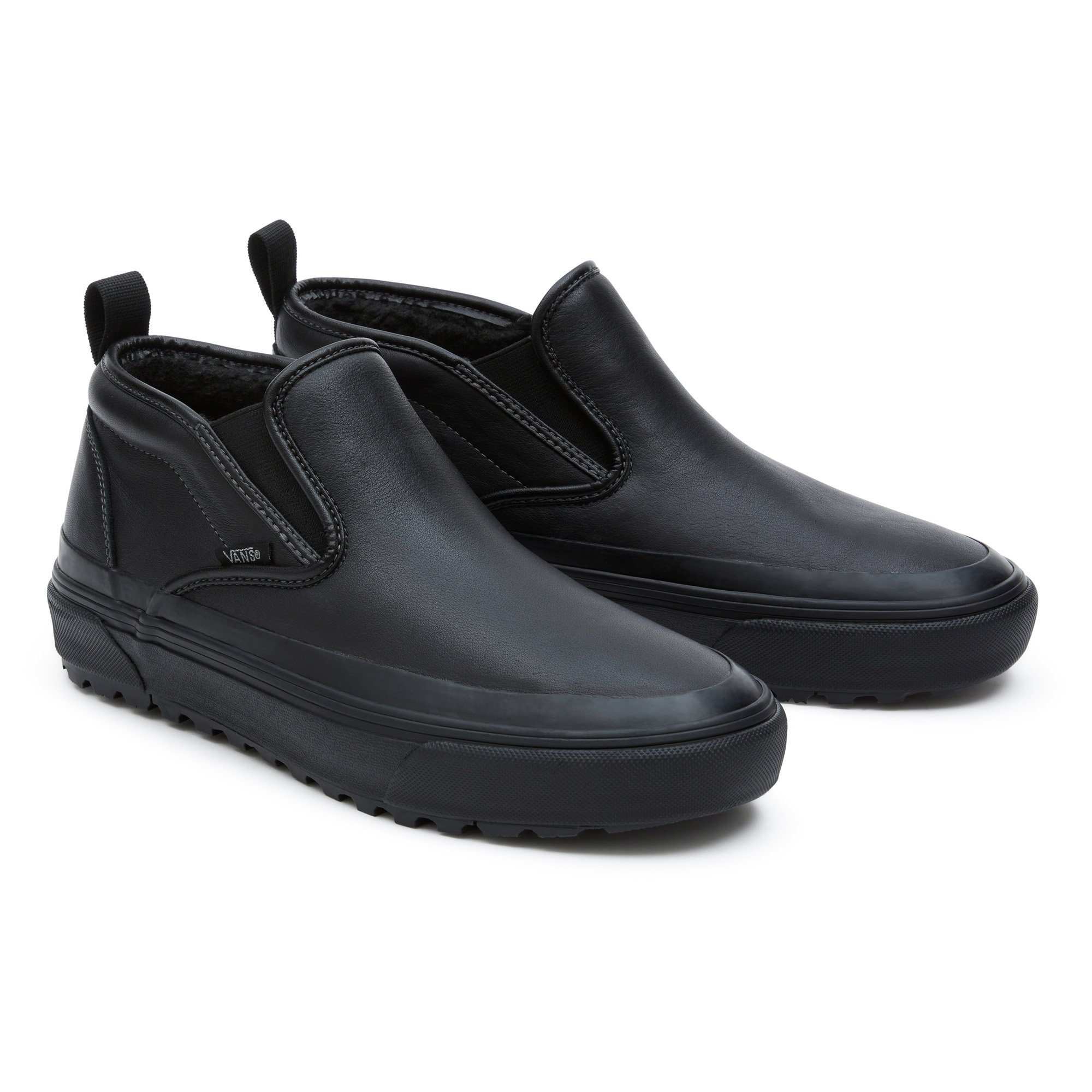 Black leather slip on vans