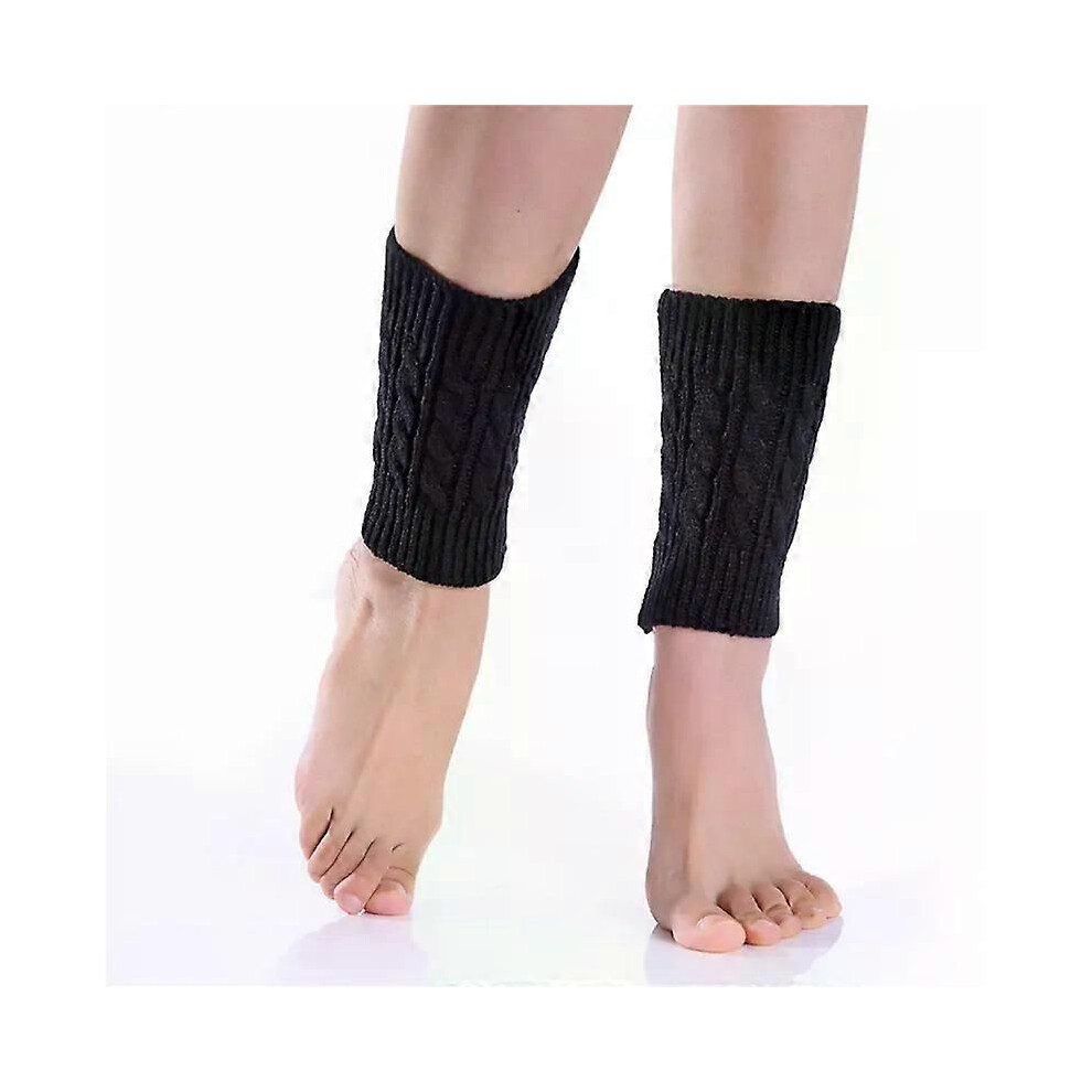 (Black) Winter Short Leg Warmers Boot Cuffs Women s Knitted Leg Warmer Fashion Thermal Legging Foot Cover Boots