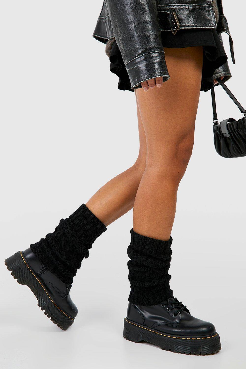 Womens Cable Knit Leg Warmers - Black - One Size, Black