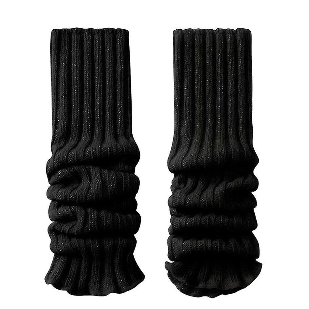 (Black) Women Ribbed Leg Warmers Wool Knit Comfortable Leg Warmers For Party Dance Sports Yoga Accessories
