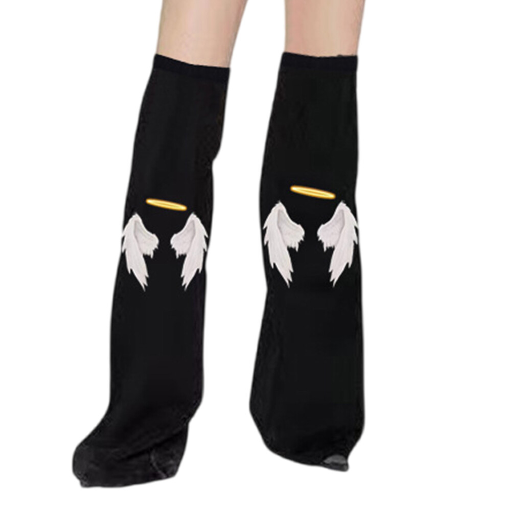 Overknee Black Denims Leg Warmers Angel Wing and Halos Print