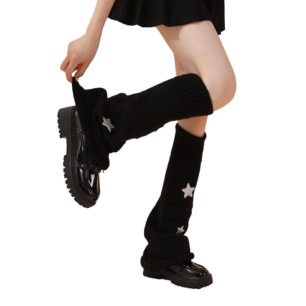 (Black) Girls Lolitas Leg Warmers Y2k Star Knitted Flared Leg Sleeves Goth Baggy Cuff Ankle Heap Socks Jk Uniform Foot Cover