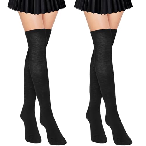 Sibba Over the Knee High Socks, Thigh Length for Women Girls, Extra Long Cotton Stockings, Leg Warmers for School, Sport, Daily Wear, Cosplay Party, Christmas - 2 Black