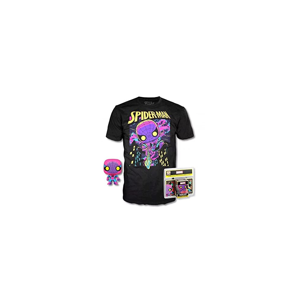 Pop- Pop & Tee Marvel Spiderman Black Light T-Shirt Size M Playsets, Multicolor (889698554886)