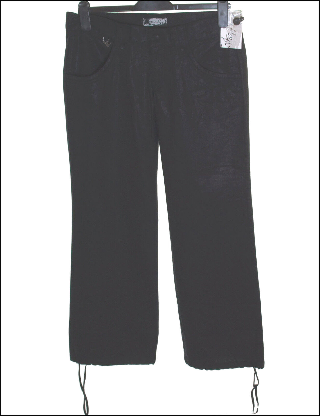 New Womens Oakley Squeeze Pant Black Linen Trousers UK8 W27" L31" Metallic Black