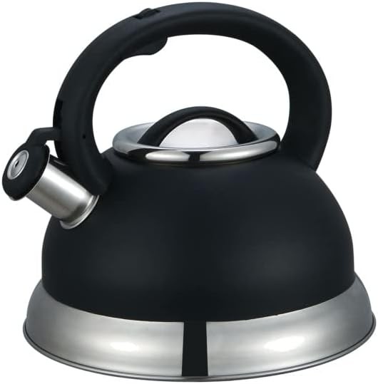 Flintshire Stainless Steel Whistling Tea Kettle W/Nylon Handle, 1.75-Quart, Matte Black