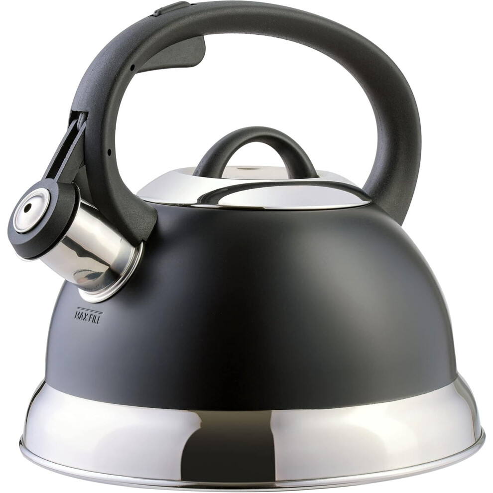 Stainless Steel 2.5L Whistling Kettle, Matte Black, 19.5cm