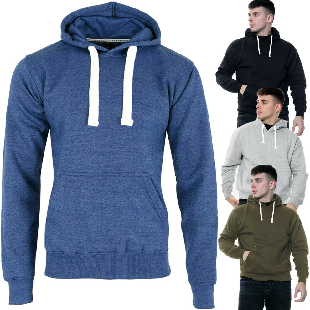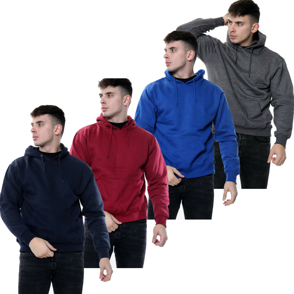 (Black, M) Mens Pullover Hoodie Plain Fleece Sweatshirt Top