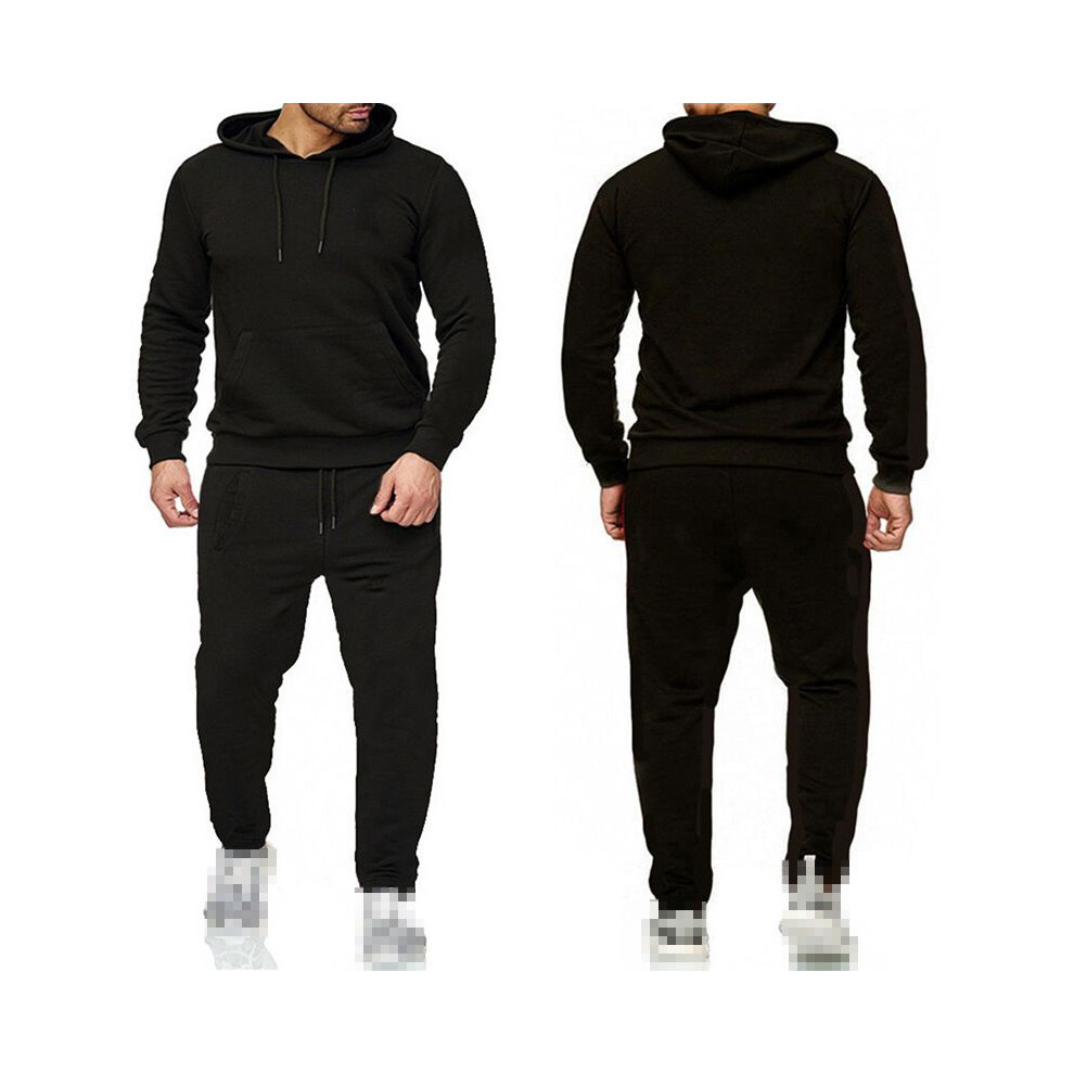 (Black, XL) Pullover Mens New Tracksuit Hoodie Jogging Bottoms Set Stretch Sweater Jogger