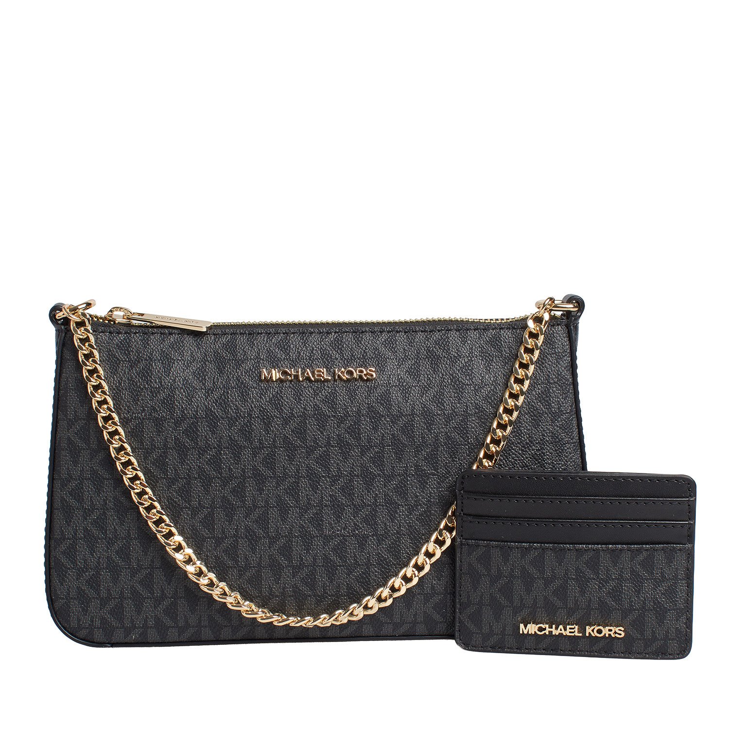 Michael Kors Jet Set WoMens Medium Handbag and Card Holder 35H1GGZD6B - Black - One Size