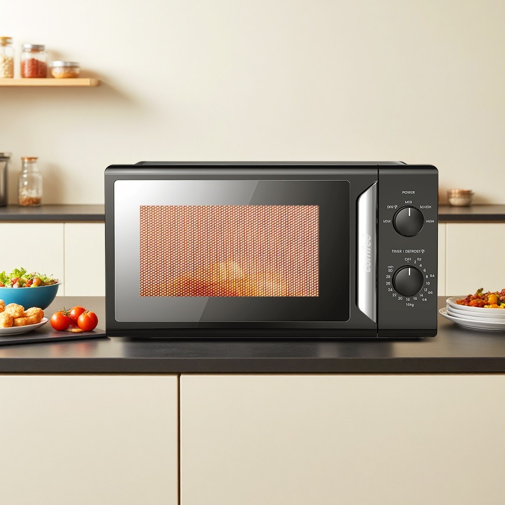 T24042BLK Manual Microwave with Sleek Mirror Door, 800W, 20L, Black &