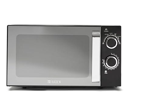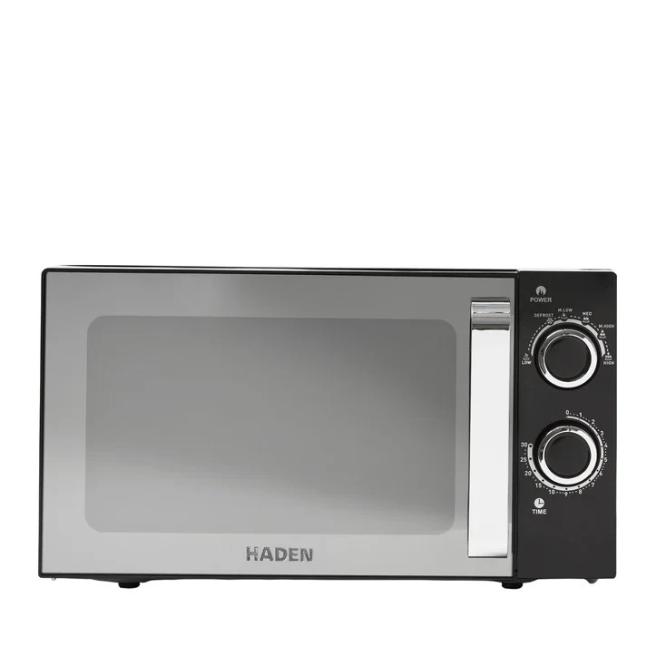 Haden 800W Black Microwave 207777, 20 Litre Capacity, Mirror Door, Manual Controls, 6 Power Levels