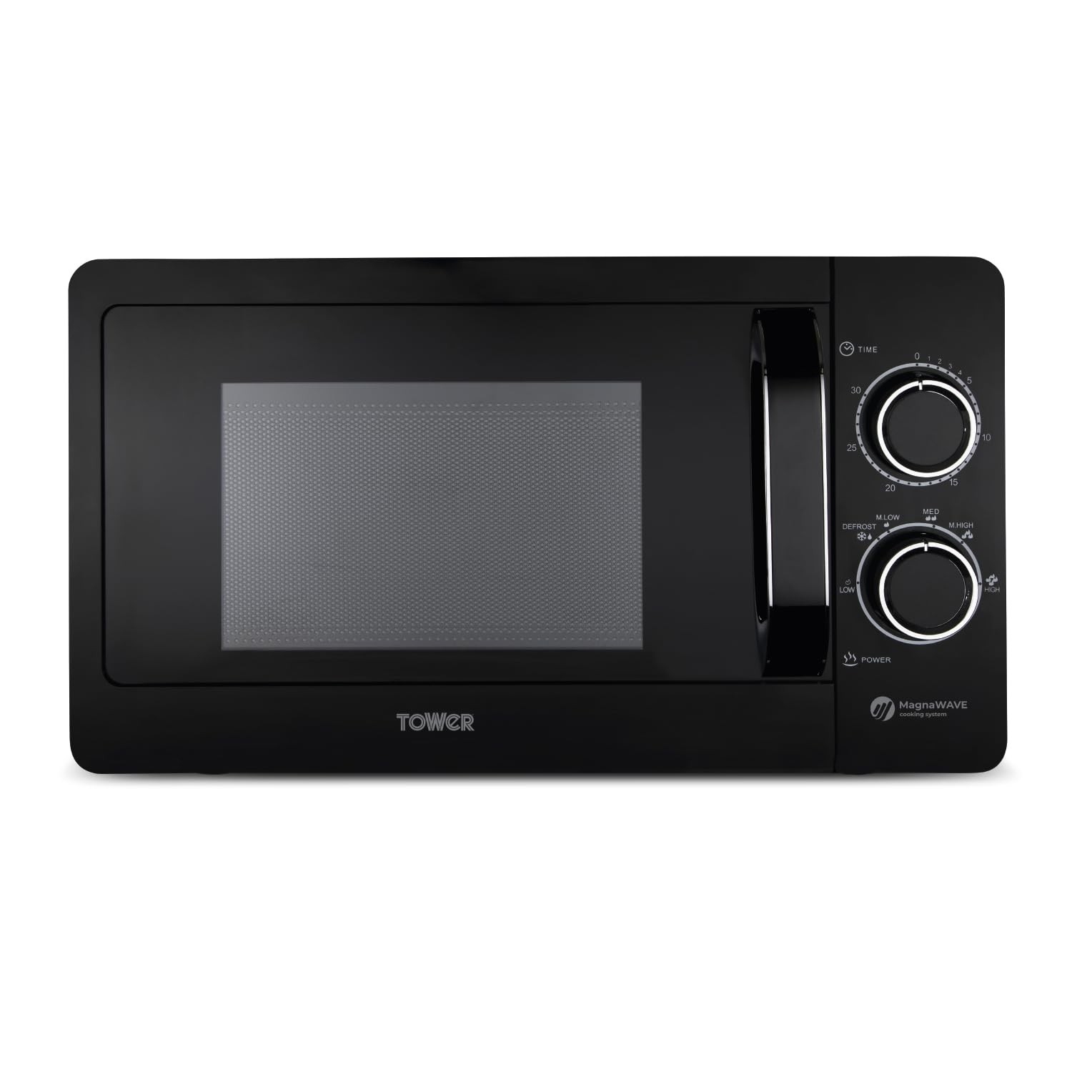 Tower 20l Manual Microwave with Sleek Mirror Door 800W T24042BLK Black & Chrome