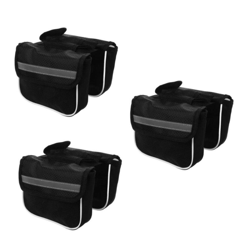 Bicycle Bag Set 3-Piece Rear Pannier Tool Bag Frame Bag Phone Holder Polyester Black for Mountain Bikes