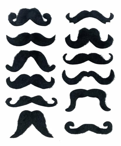 IRYNA Fake Moustache 12 Pack Black False Moustache Moustache Fancy Dress Stick On Moustache Pack Adults Novelty Joke False Moustache for Adults Kids Masquerade Party Favor Costume and Performance