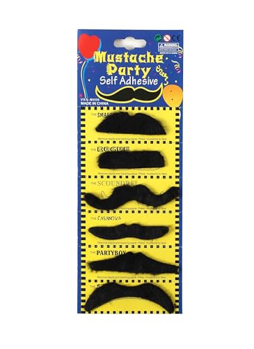 Komonee 6 x Mexican Moustache Black Halloween Bandit Mustache For Fancy Dress Up Costume Fake Hair Accessory Outfit Novelty Joke