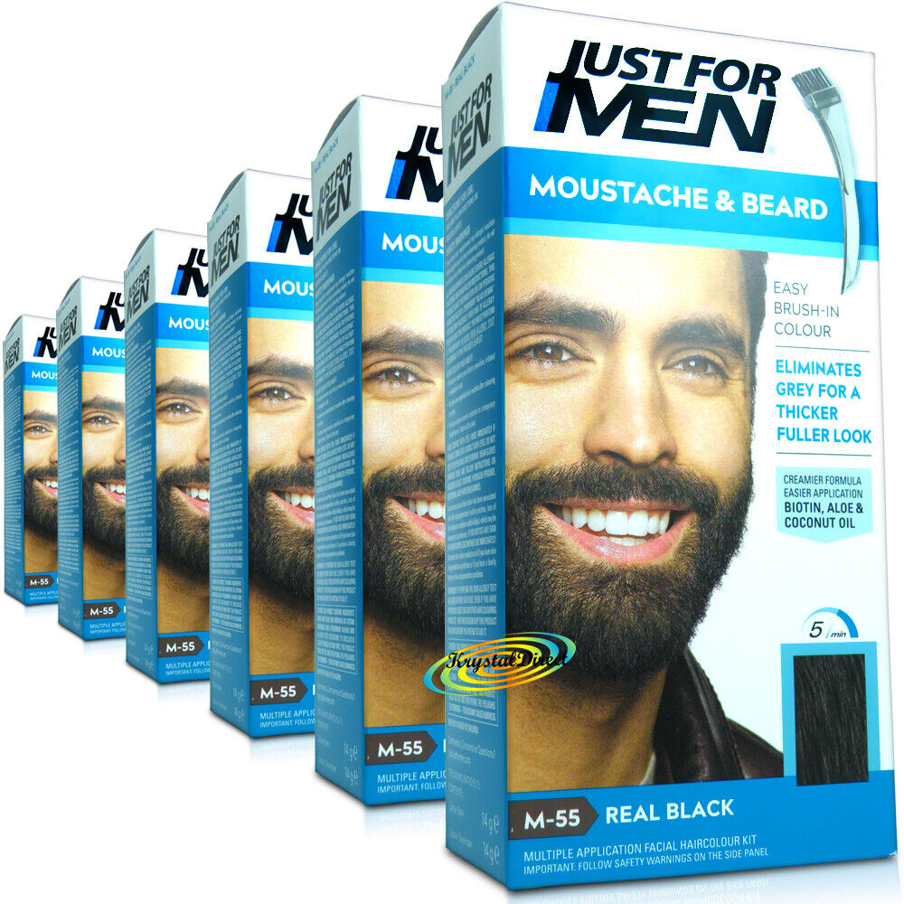 6x Just For Men M55 Real Black Moustache & Beard Facial Hair Colour Gel Dye