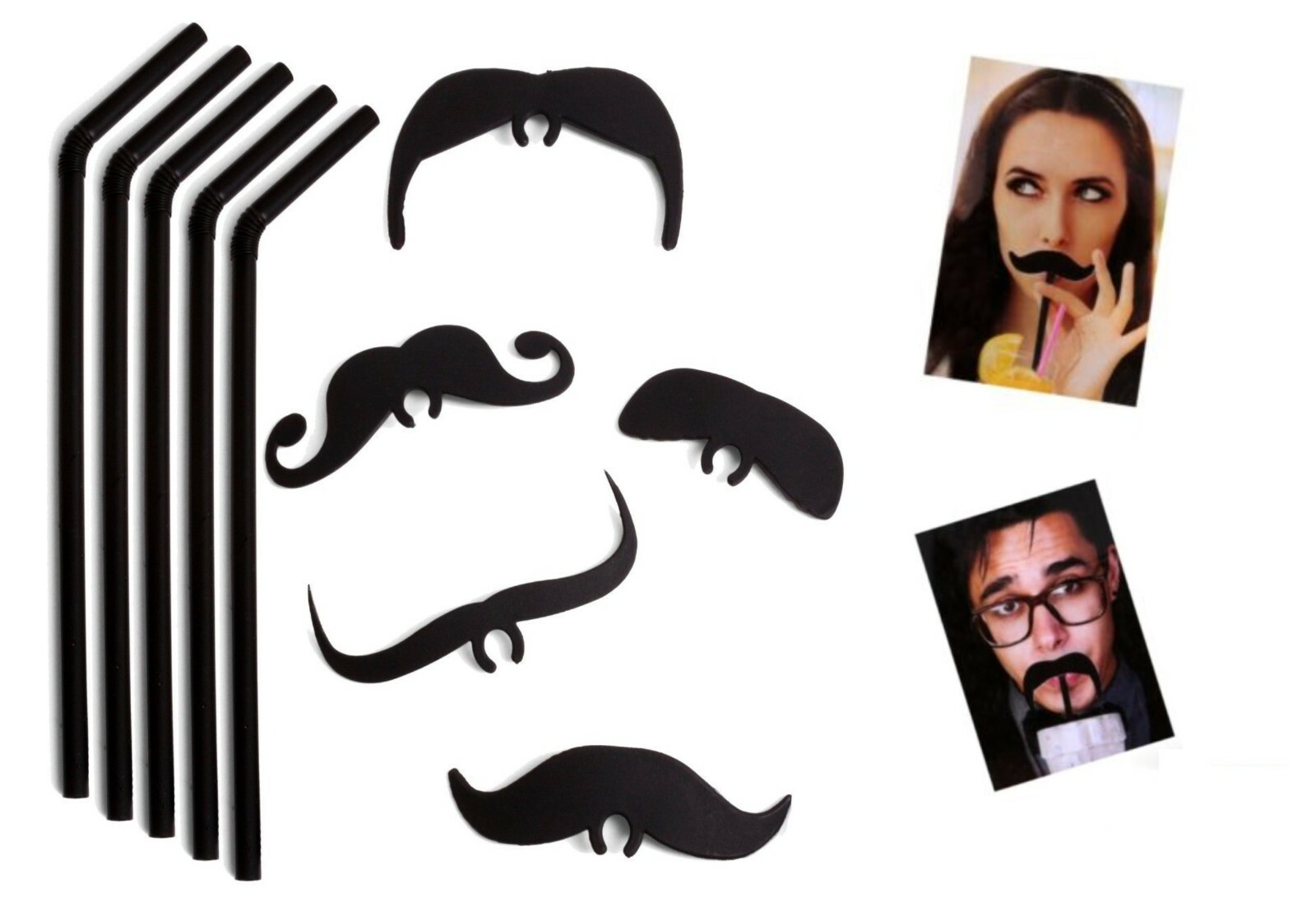 Black Straws & Black Moustache Top Fun Drink Accessory Hen Party Stag P619016