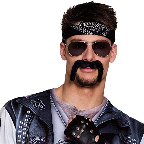 Boland 01814 – Moustache Biker, One Size, Black, Self-Adhesive, Moustache, Rocker, Costume, Fancy Dress, Accessory, Carnival, Theme Party, Halloween