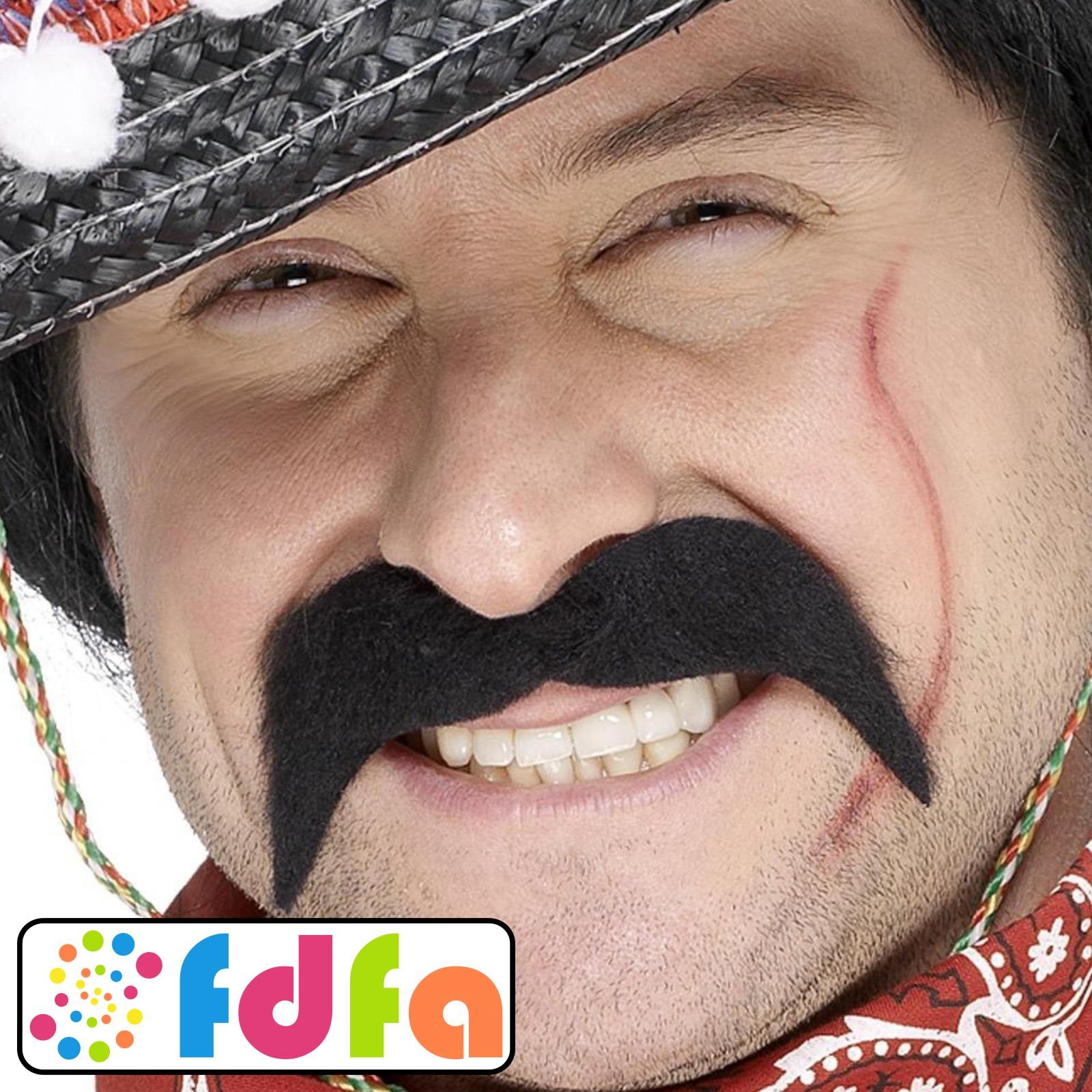 Smiffys Mexican Bandit Tash Black Moustache Mens Adults Fancy Dress Accessory