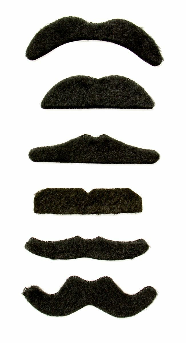 6 X BLACK GENTLEMAN'S MOUSTACHE SET BRITISH FANCY DRESS COSTUME ACCESSORIES