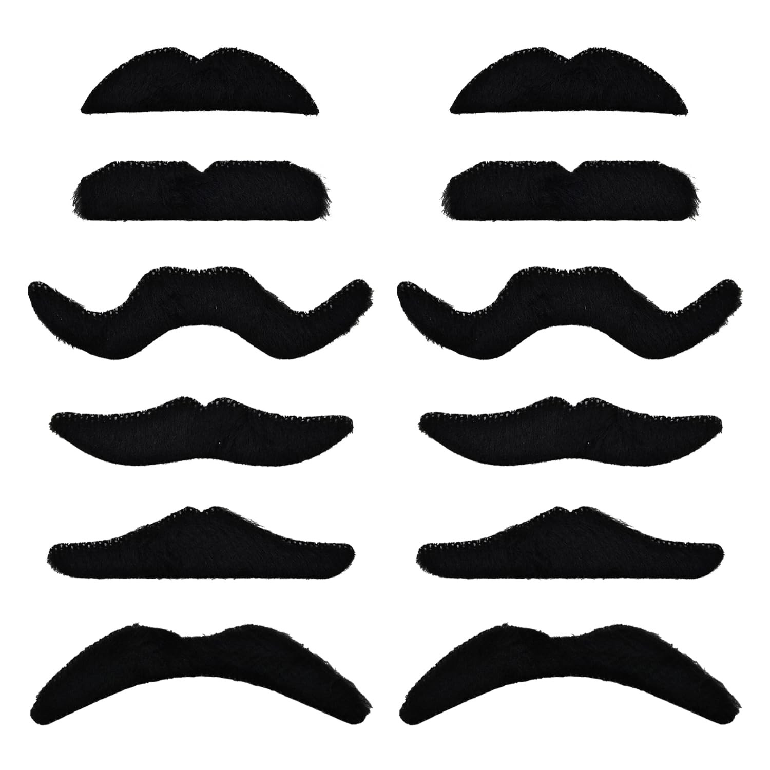 Fake Moustache Set, 12 PCS Black False Moustache, Fancy Dress Stick On Moustach