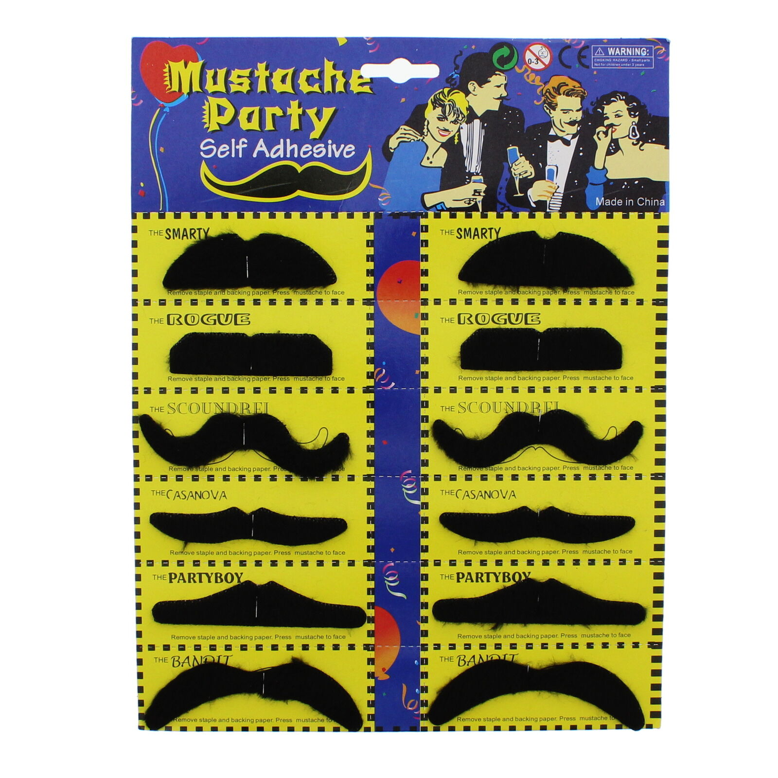 Zac's Alter Ego® 12 Fancy Dress Black Assorted Design Moustache Stickers