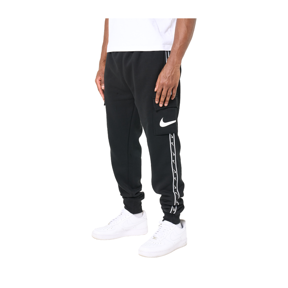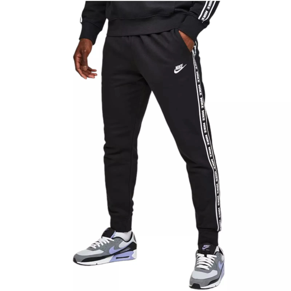Nike Mens Repeat Taping Logo Fleece Cuffed Joggers in Black Cotton - Size Large