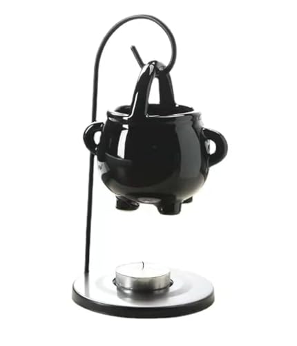 Makimoo Hanging Pagan Cauldron Oil Burner, Black Wax Warmer Aroma Diffuser, with Handle, for Essential Scented Wax, Enchanting Witch Home Decor Element.
