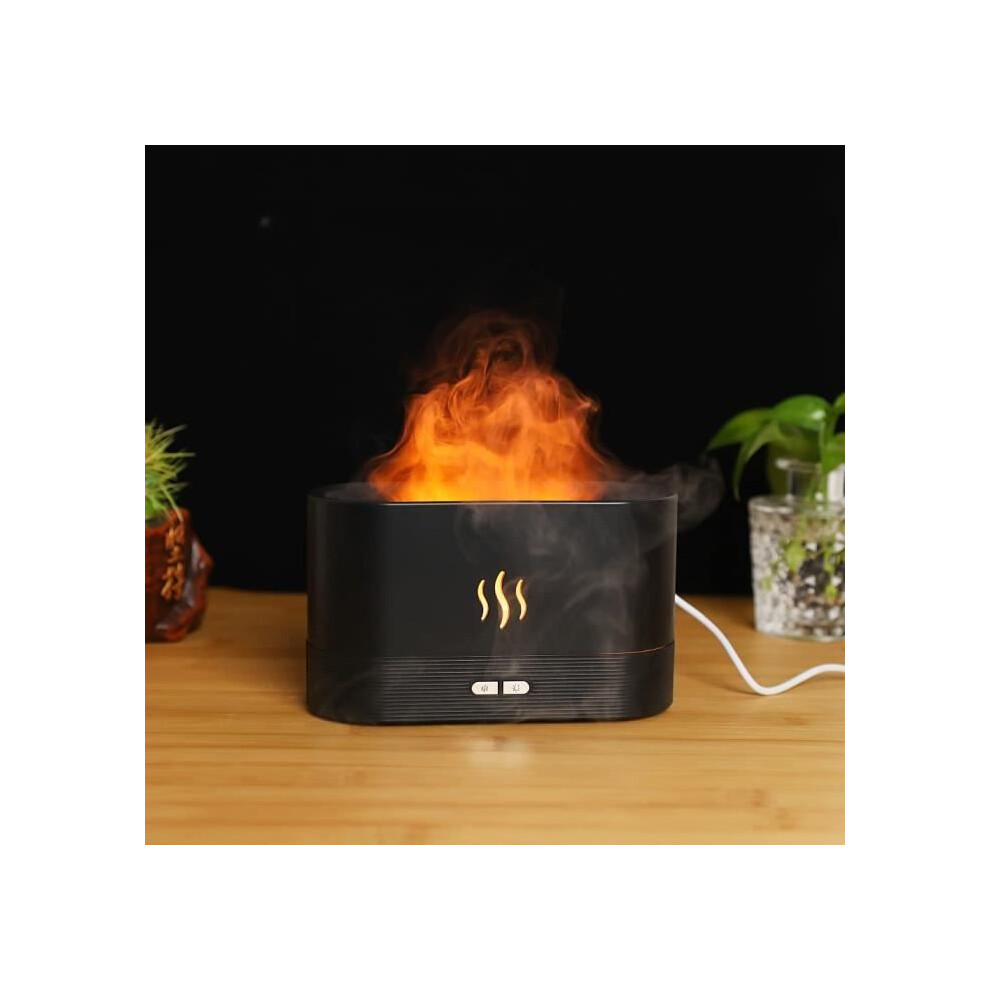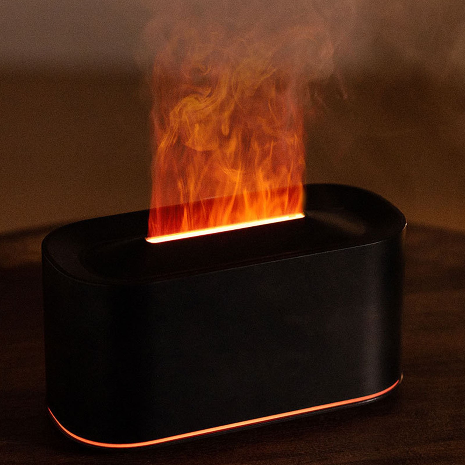 Black USB Essential Oil Diffuser with Flame Light, Humidifier, 17.1x7.5x10.1cm