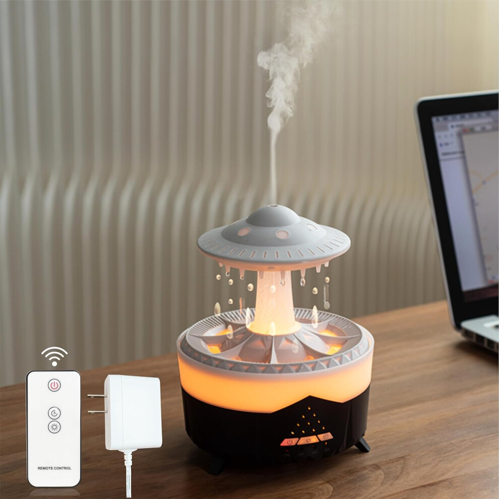(Black) Essential Oil Diffuser 350ML UFO Raindrop Aromatherapy Diffuser Cool Mist Humidifier with 7 Colors LED Lights,Remote Control,Plug in