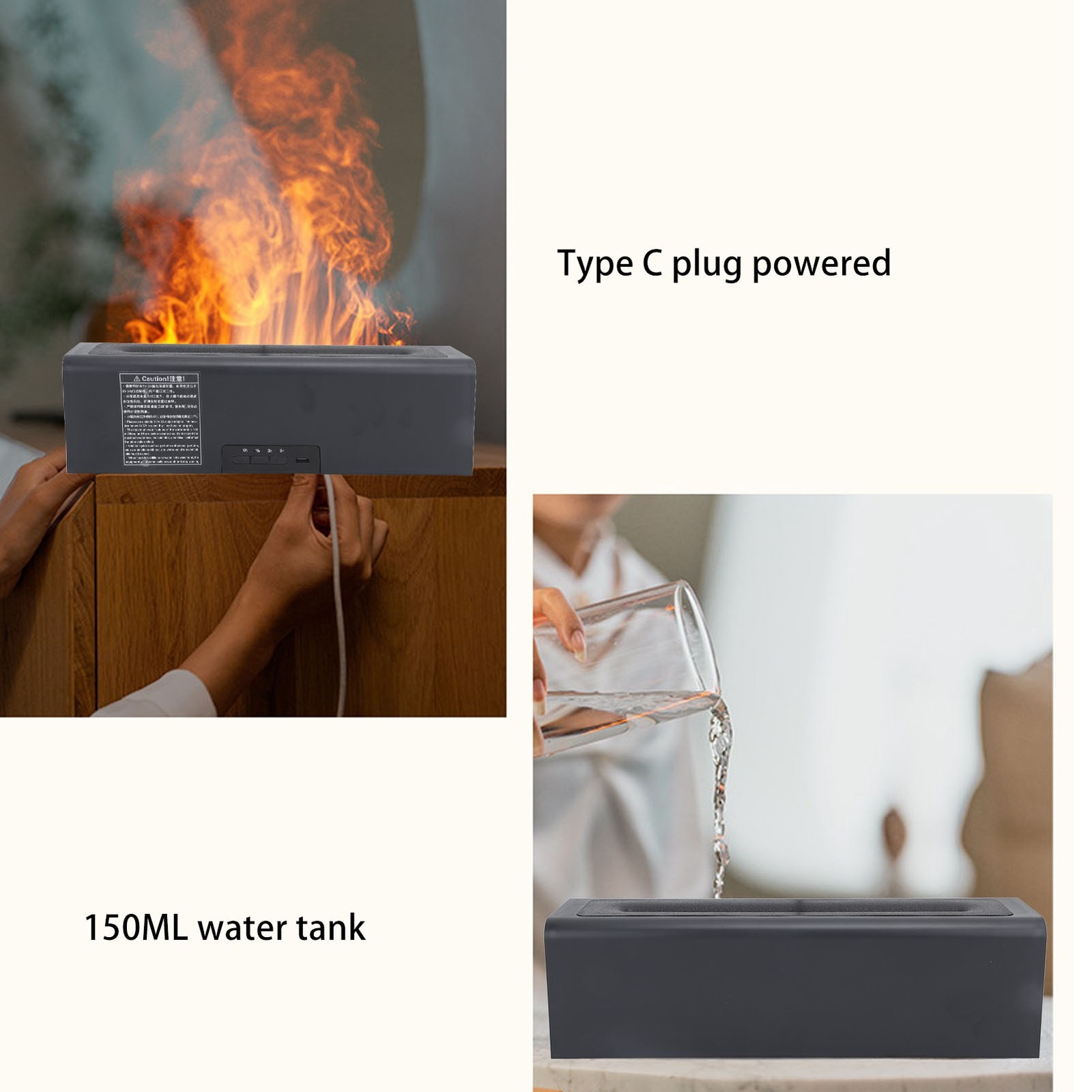 (Black)Essential Oil Diffuser 160ml Fire Flame Aromatherapy Diffuser Cool FI