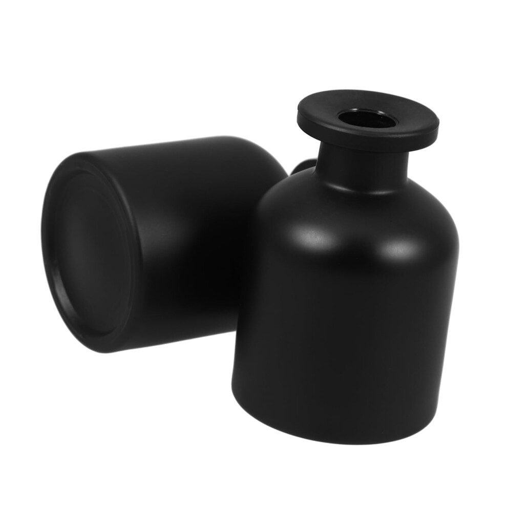 Pack of 2 Glass Aroma Diffuser Bottles, Black Essential Oil Reed Diffuser Replacement, Fragrance Dispenser 100ml