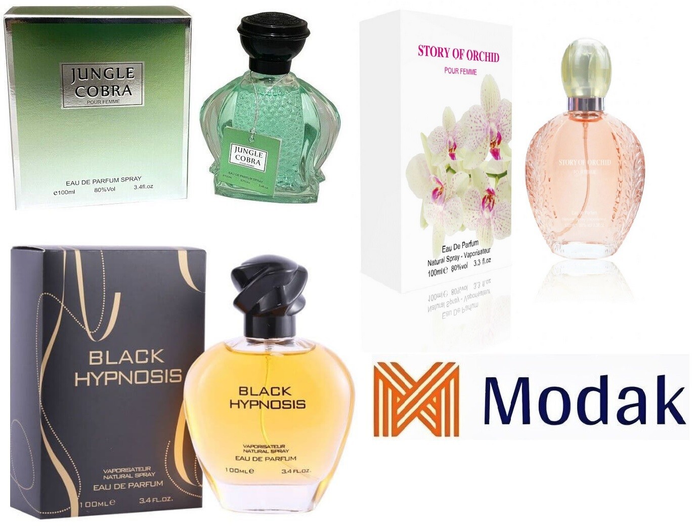 Modak 3 Pack women Perfume Black Hypnosis,Story of Orchid,Jungle Cobra EDP 100ml