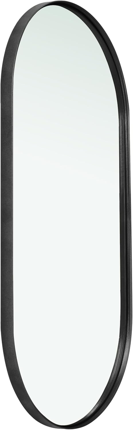 Americanflat 50x100 cm Black Oval Mirror - Aluminium Framed Bathroom Mirror in Black for Living Room or Bedroom - Wall-Mounted Hanging Design with Modern Rounded Frame