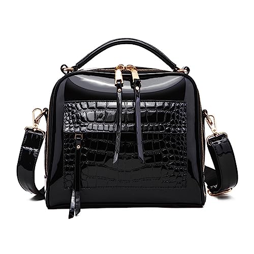 Black patent handbags
