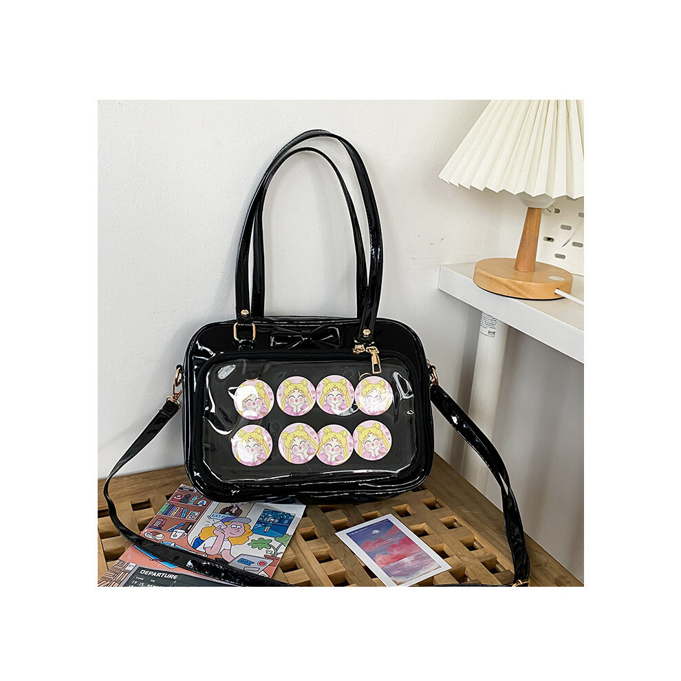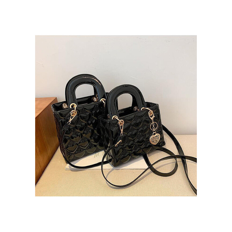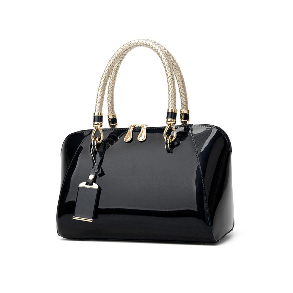 Black patent handbags