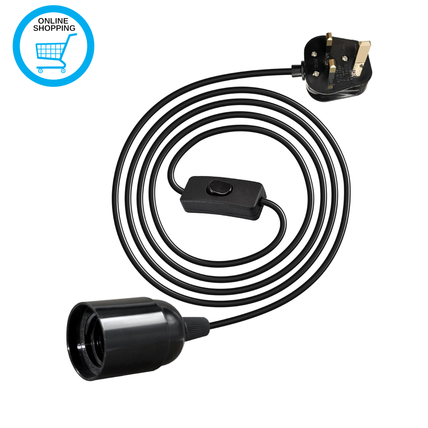 E27 Lamp Holder with Switch and Plug, 450Cm Black Ceiling Pendant Light Fitting,
