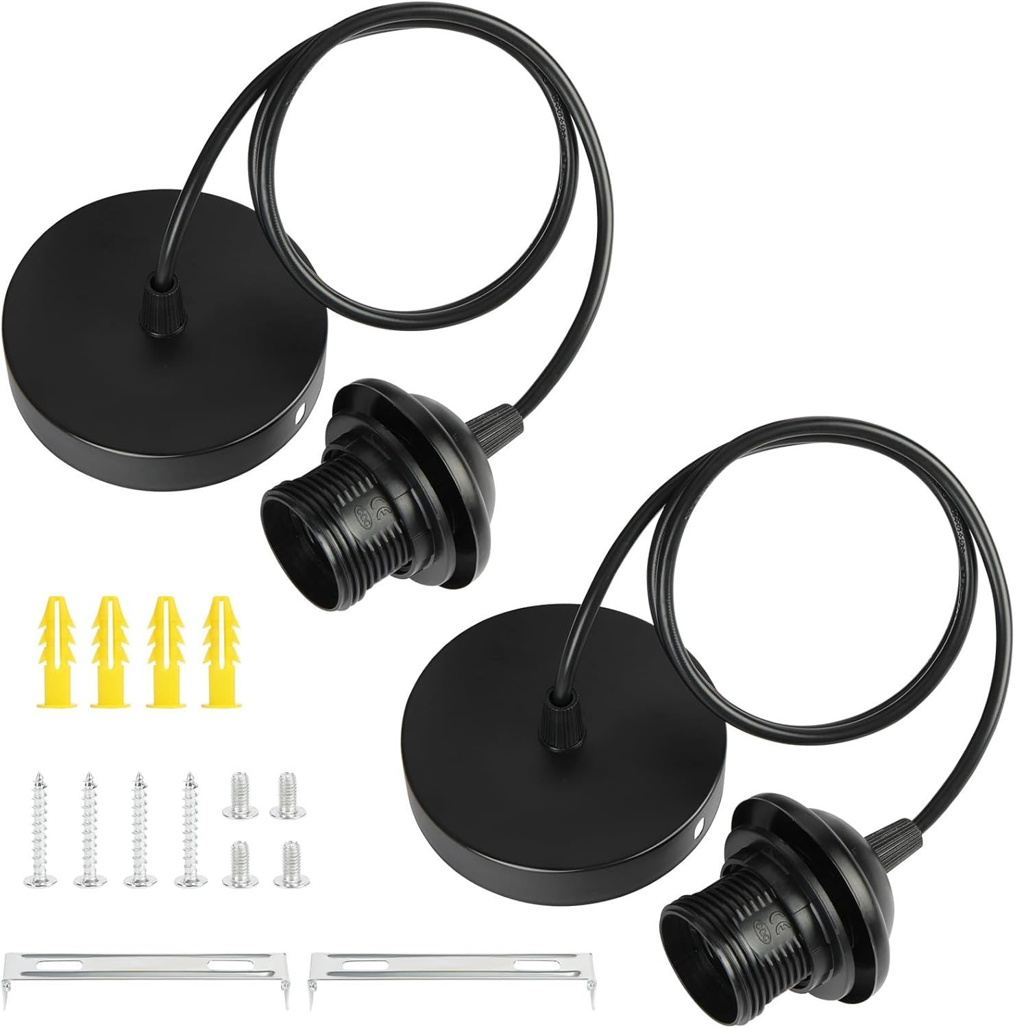 AUAUY 2 Pack Black Pendant Light Fitting, E27 Lamp Holder for Ceiling Pendant Li