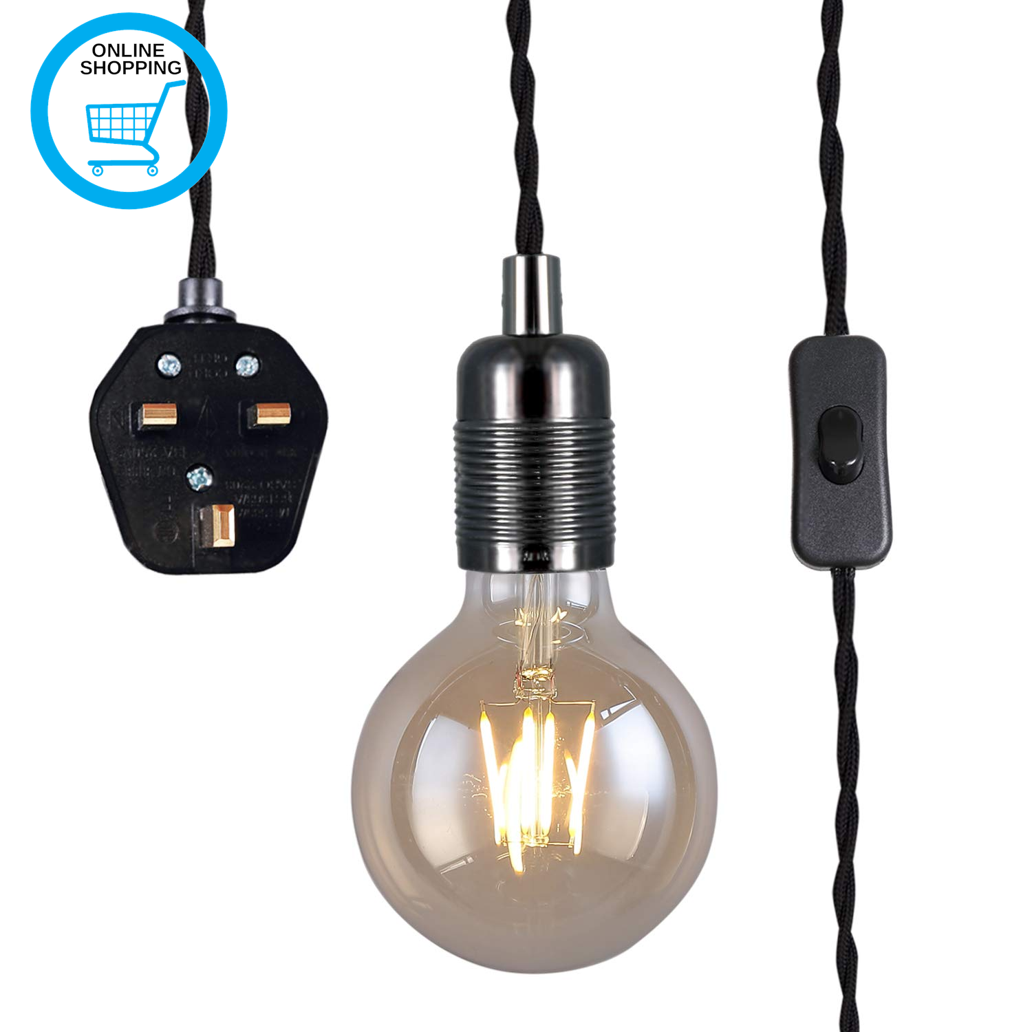 Black Pendant Light Fitting With Plug In Vintage Style Hanging Light KIT E27 La