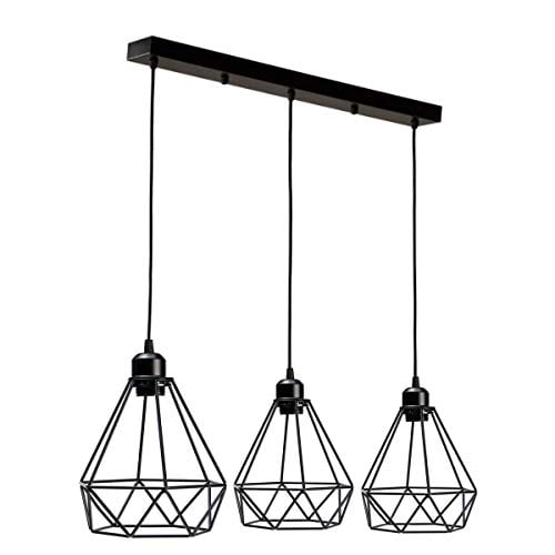 LEDSone Vintage Retro 3 Way Ceiling Pendant Light Cluster Light Fitting Black Diamond Shaped Wire Cage Lampshades, UK E27 Holder Lighting Kit, Black