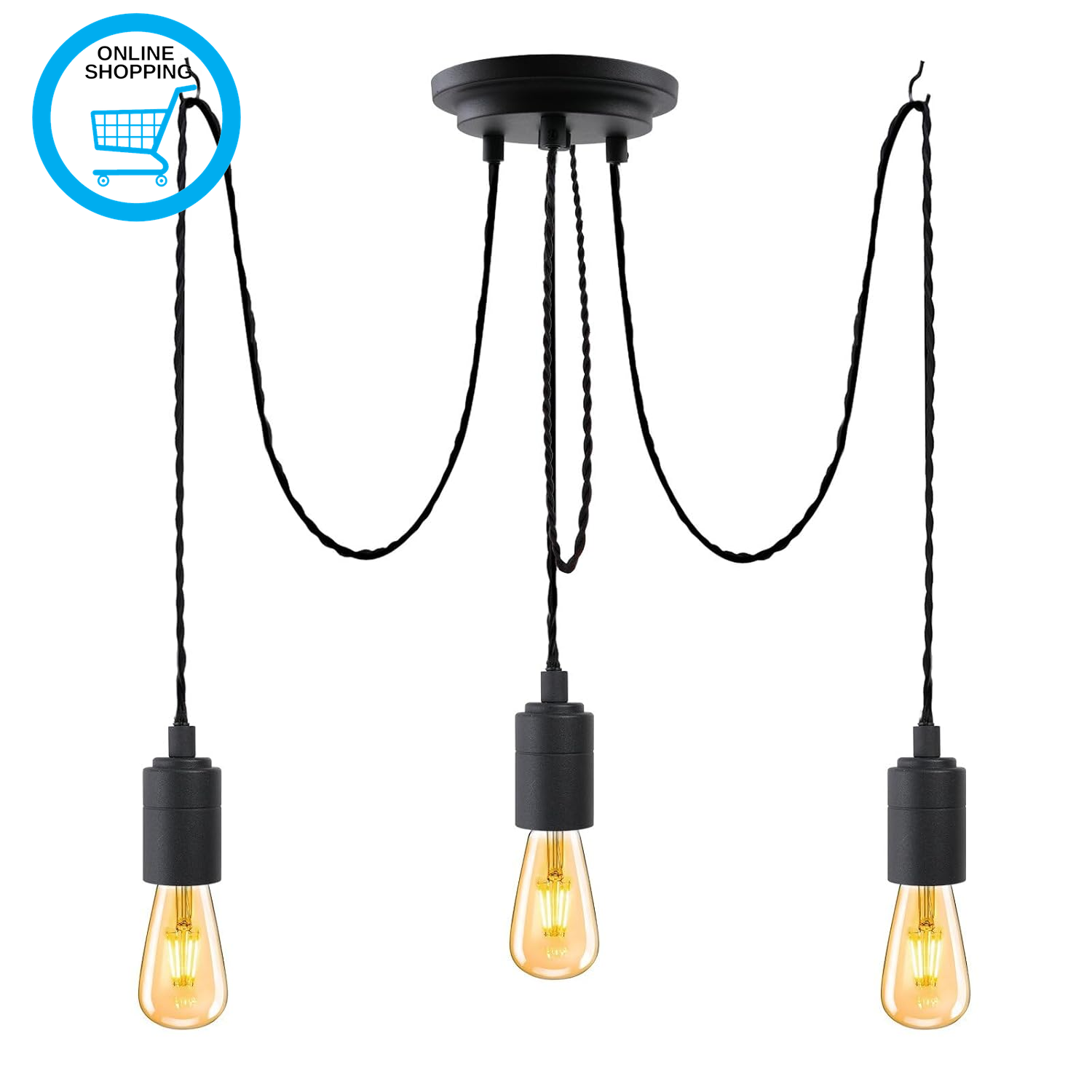 3 Bulb Ceiling Pendant Light Fitting Black LED E27 60W Bulb
