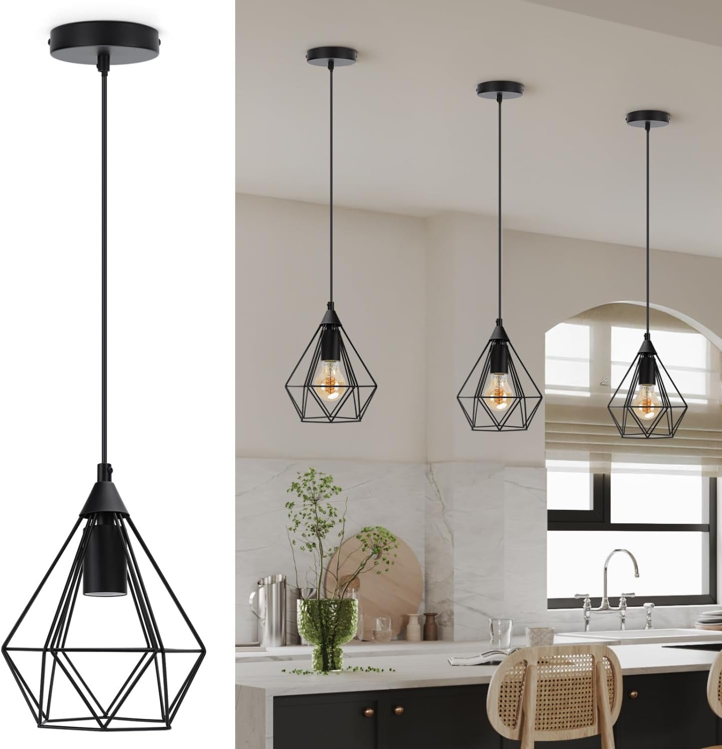 Black Pendant Light Fitting with Shade, Aigostar Cage Light,