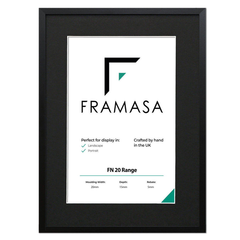 (Black Frame Black Mount, 16x14 Pic (20x18 Frame)) Thin Matt Picture Frames Black Photo Frames Poster Frames With Black, White or Ivory Mounts