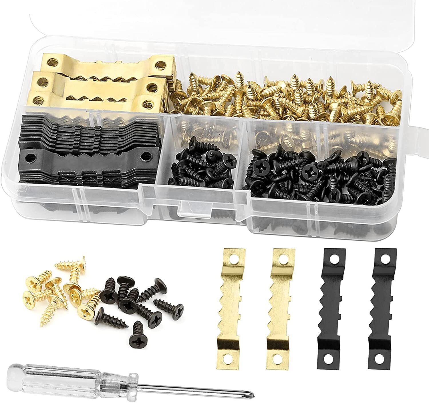 100x Sawtooth Picture Hangers 200x Screws 2Hole Photos Hanging Hooks Kit Black♫